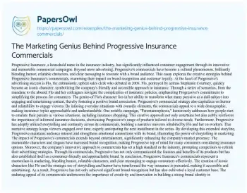 The Marketing Genius Behind Progressive Insurance Commercials. (2024, Mar 12). Retrieved from https://hub.papersowl.com/examples/the-marketing-genius-behind-progressive-insurance-commercials/