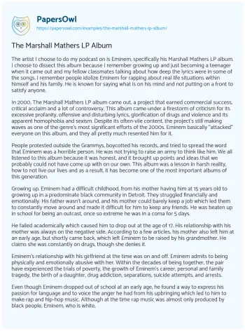 The Marshall Mathers LP Album. (2019, Nov 26). Retrieved from https://hub.papersowl.com/examples/the-marshall-mathers-lp-album/