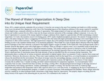 The Marvel of Water's Vaporization: A Deep Dive into its Unique Heat Requirement. (2023, Dec 04). Retrieved from https://hub.papersowl.com/examples/the-marvel-of-waters-vaporization-a-deep-dive-into-its-unique-heat-requirement/