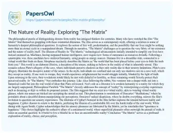 The Nature of Reality: Exploring "The Matrix". (2020, Apr 10). Retrieved from https://hub.papersowl.com/examples/the-matrix-philosophy/