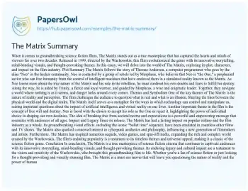 The Matrix Summary. (2025, Dec 10). Retrieved from https://hub.papersowl.com/examples/the-matrix-summary/