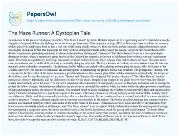 This essay will discuss “The Maze Runner” by James Dashner as a notable work in the dystopian genre. It will explore the novel’s themes of survival, identity, and society in a post-apocalyptic world, as well as its contribution to the young adult dystopian narrative. You can also find more related free essay samples at PapersOwl about The Maze Runner.
