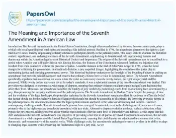 The Meaning and Importance of the Seventh Amendment in American Law. (2024, Jul 06). Retrieved from https://hub.papersowl.com/examples/the-meaning-and-importance-of-the-seventh-amendment-in-american-law/