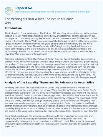 The Meaning of Oscar Wilde’s The Picture of Dorian Gray. (2021, Apr 24). Retrieved from https://hub.papersowl.com/examples/the-meaning-of-oscar-wildes-the-picture-of-dorian-gray/