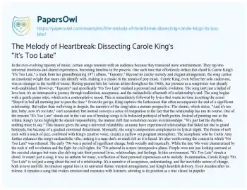 The Melody of Heartbreak: Dissecting Carole King's "It's Too Late". (2023, Oct 16). Retrieved from https://hub.papersowl.com/examples/the-melody-of-heartbreak-dissecting-carole-kings-its-too-late/