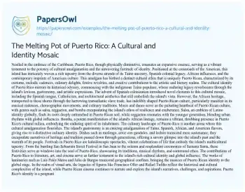 The Melting Pot of Puerto Rico: A Cultural and Identity Mosaic. (2024, Mar 01). Retrieved from https://hub.papersowl.com/examples/the-melting-pot-of-puerto-rico-a-cultural-and-identity-mosaic/