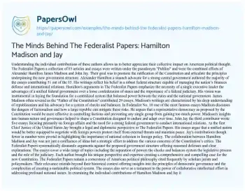 The Minds Behind The Federalist Papers: Hamilton Madison and Jay. (2024, Jul 06). Retrieved from https://hub.papersowl.com/examples/the-minds-behind-the-federalist-papers-hamilton-madison-and-jay/
