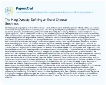The Ming Dynasty: Defining an Era of Chinese Greatness. (2024, May 28). Retrieved from https://hub.papersowl.com/examples/the-ming-dynasty-defining-an-era-of-chinese-greatness/