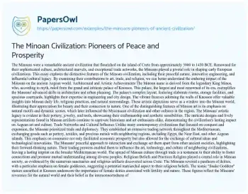The Minoan Civilization: Pioneers of Peace and Prosperity. (2024, Jul 06). Retrieved from https://hub.papersowl.com/examples/the-minoans-pioneers-of-ancient-civilization/