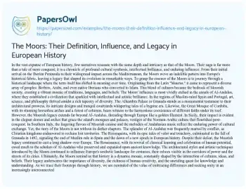 The Moors: Their Definition, Influence, and Legacy in European History. (2024, Jun 17). Retrieved from https://hub.papersowl.com/examples/the-moors-their-definition-influence-and-legacy-in-european-history/