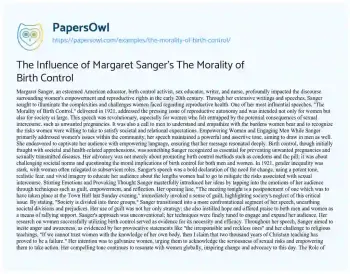 The Influence of Margaret Sanger’s The Morality of Birth Control