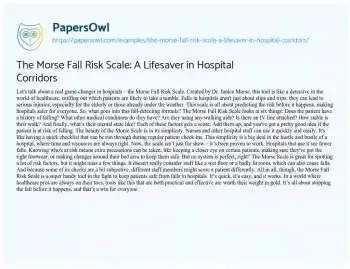 The Morse Fall Risk Scale: A Lifesaver in Hospital Corridors. (2023, Dec 22). Retrieved from https://hub.papersowl.com/examples/the-morse-fall-risk-scale-a-lifesaver-in-hospital-corridors/