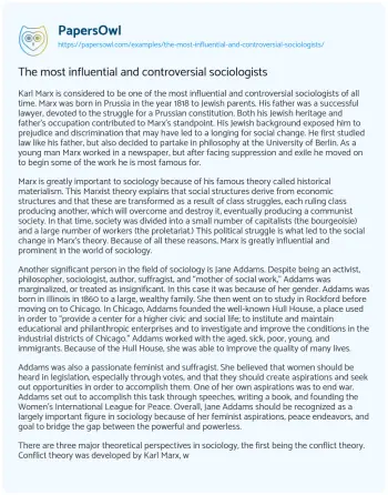 The most influential and controversial sociologists. (2021, Oct 15). Retrieved from https://hub.papersowl.com/examples/the-most-influential-and-controversial-sociologists/