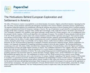 The Motivations Behind European Exploration and Settlement in America. (2024, May 21). Retrieved from https://hub.papersowl.com/examples/the-motivations-behind-european-exploration-and-settlement-in-america/