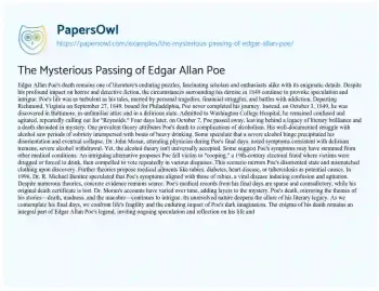 The Mysterious Passing of Edgar Allan Poe. (2024, Jun 28). Retrieved from https://hub.papersowl.com/examples/the-mysterious-passing-of-edgar-allan-poe/