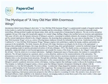 The Mystique of "A Very Old Man With Enormous Wings". (2024, Dec 27). Retrieved from https://hub.papersowl.com/examples/the-mystique-of-a-very-old-man-with-enormous-wings/