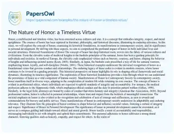 The Nature of Honor: a Timeless Virtue. (2025, Mar 31). Retrieved from https://hub.papersowl.com/examples/the-nature-of-honor-a-timeless-virtue/
