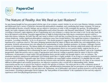The Nature of Reality: Are We Real or Just Illusions?. (2024, Jun 01). Retrieved from https://hub.papersowl.com/examples/the-nature-of-reality-are-we-real-or-just-illusions/