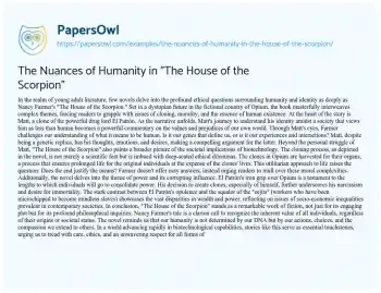 The Nuances of Humanity in "The House of the Scorpion". (2023, Oct 10). Retrieved from https://hub.papersowl.com/examples/the-nuances-of-humanity-in-the-house-of-the-scorpion/
