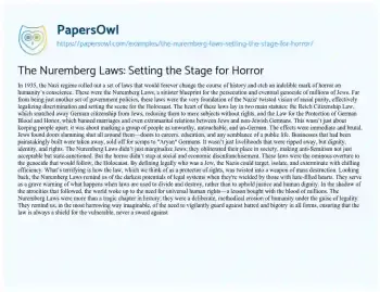 The Nuremberg Laws: Setting the Stage for Horror. (2024, Mar 25). Retrieved from https://hub.papersowl.com/examples/the-nuremberg-laws-setting-the-stage-for-horror/