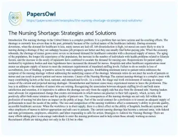 The Nursing Shortage: Strategies and Solutions. (2025, Mar 13). Retrieved from https://hub.papersowl.com/examples/the-nursing-shortage-strategies-and-solutions/