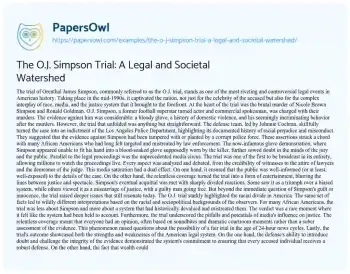 The O.J. Simpson Trial: A Legal and Societal Watershed. (2023, Oct 26). Retrieved from https://hub.papersowl.com/examples/the-o-j-simpson-trial-a-legal-and-societal-watershed/