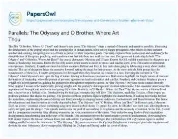 The film "O Brother, Where Art Thou?" and Homer's epic poem "The Odyssey" share a myriad of thematic and narrative parallels, illustrating the timelessness of the journey motif and the complexities of human nature. Both stories feature protagonists who believe in their superior intellect and cunning, navigating a series of trials in pursuit of their respective goals. This essay explores these connections and underscores the shared themes of deception, prophecy, and transformation that link these two works across time.