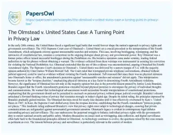 The Olmstead v. United States Case: A Turning Point in Privacy Law. (2024, Jun 17). Retrieved from https://hub.papersowl.com/examples/the-olmstead-v-united-states-case-a-turning-point-in-privacy-law/