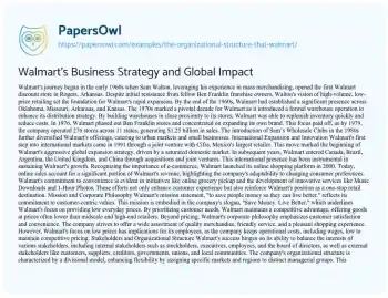 Walmart's Business Strategy and Global Impact. (2020, Jan 05). Retrieved from https://hub.papersowl.com/examples/the-organizational-structure-that-walmart/