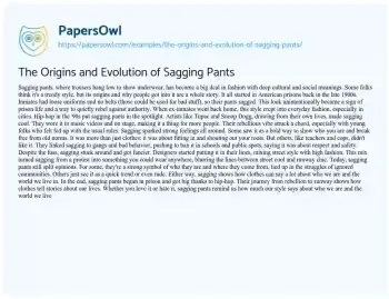The Origins and Evolution of Sagging Pants. (2024, Jul 21). Retrieved from https://hub.papersowl.com/examples/the-origins-and-evolution-of-sagging-pants/