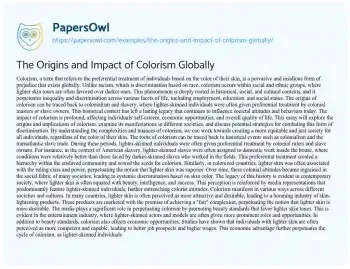The Origins and Impact of Colorism Globally. (2025, Mar 29). Retrieved from https://hub.papersowl.com/examples/the-origins-and-impact-of-colorism-globally/