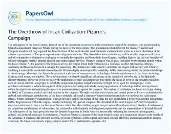 The Overthrow of Incan Civilization: Pizarro's Campaign. (2024, Apr 01). Retrieved from https://hub.papersowl.com/examples/the-overthrow-of-incan-civilization-pizarros-campaign/