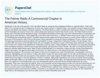 The Palmer Raids: A Controversial Chapter in American History. (2024, Jun 28). Retrieved from https://hub.papersowl.com/examples/the-palmer-raids-a-controversial-chapter-in-american-history/