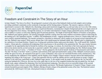 Freedom and Constraint in The Story of an Hour. (2021, Apr 26). Retrieved from https://hub.papersowl.com/examples/the-paradox-of-freedom-and-fragility-in-the-story-of-an-hour/