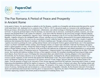 The Pax Romana: A Period of Peace and Prosperity in Ancient Rome. (2024, May 21). Retrieved from https://hub.papersowl.com/examples/the-pax-romana-a-period-of-peace-and-prosperity-in-ancient-rome/