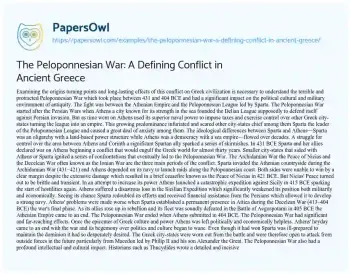 The Peloponnesian War: A Defining Conflict in Ancient Greece. (2024, Jul 06). Retrieved from https://hub.papersowl.com/examples/the-peloponnesian-war-a-defining-conflict-in-ancient-greece/