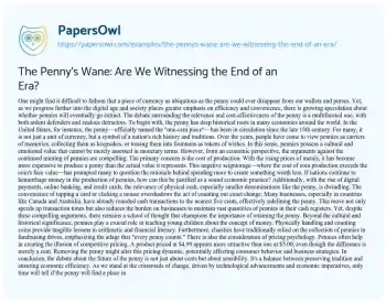 The Penny's Wane: Are We Witnessing the End of an Era?. (2023, Oct 16). Retrieved from https://hub.papersowl.com/examples/the-pennys-wane-are-we-witnessing-the-end-of-an-era/