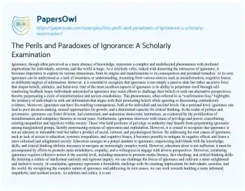 The Perils and Paradoxes of Ignorance: A Scholarly Examination. (2024, Mar 01). Retrieved from https://hub.papersowl.com/examples/the-perils-and-paradoxes-of-ignorance-a-scholarly-examination/