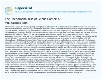 The Phenomenal Rise of Selena Gomez: A Multifaceted Icon. (2024, Jul 06). Retrieved from https://hub.papersowl.com/examples/the-phenomenal-rise-of-selena-gomez-a-multifaceted-icon/