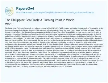 The Philippine Sea Clash: A Turning Point in World War II. (2024, Feb 20). Retrieved from https://hub.papersowl.com/examples/the-philippine-sea-clash-a-turning-point-in-world-war-ii/