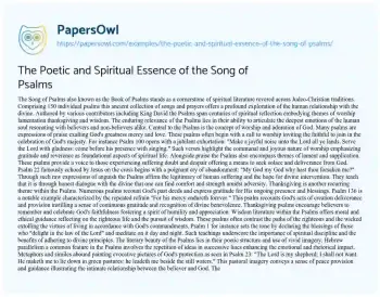 The Poetic and Spiritual Essence of the Song of Psalms. (2024, Jul 06). Retrieved from https://hub.papersowl.com/examples/the-poetic-and-spiritual-essence-of-the-song-of-psalms/