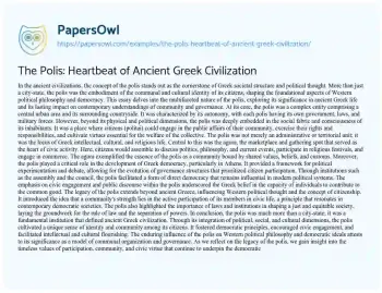 The Polis: Heartbeat of Ancient Greek Civilization. (2024, Mar 18). Retrieved from https://hub.papersowl.com/examples/the-polis-heartbeat-of-ancient-greek-civilization/