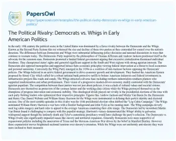 The Political Rivalry: Democrats vs. Whigs in Early American Politics. (2024, Jul 06). Retrieved from https://hub.papersowl.com/examples/the-political-rivalry-democrats-vs-whigs-in-early-american-politics/