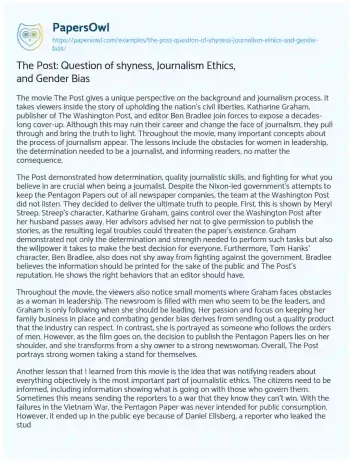The Post: Question of shyness, Journalism Ethics, and Gender Bias. (2023, Mar 24). Retrieved from https://hub.papersowl.com/examples/the-post-question-of-shyness-journalism-ethics-and-gender-bias/