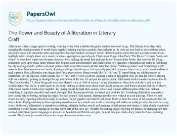 Order now Think about Edgar Allan Poe's "The Raven." He uses "weak and weary" to show how wiped out his main character feels, making the poem feel dark and heavy. Even in kids' books, like those by Dr. Seuss, alliteration pops up to make funny phrases that help us learn and remember.