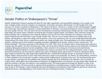 Gender Politics in Shakespeare's "Shrew". (2019, Jul 05). Retrieved from https://hub.papersowl.com/examples/the-power-of-feminism-through-literature/