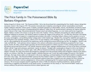 The Price Family In The Poisonwood Bible By Barbara Kingsolver. (2024, Apr 29). Retrieved from https://hub.papersowl.com/examples/the-price-family-in-the-poisonwood-bible-by-barbara-kingsolver/