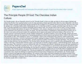 The Principle People Of God: The Cherokee Indian Culture. (2024, Apr 22). Retrieved from https://hub.papersowl.com/examples/the-principle-people-of-god-the-cherokee-indian-culture/