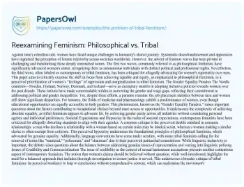 Reexamining Feminism: Philosophical vs. Tribal. (2021, Mar 18). Retrieved from https://hub.papersowl.com/examples/the-problem-of-tribal-feminism/