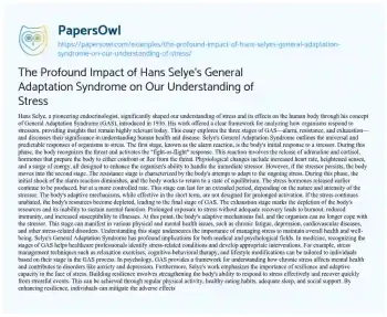The Profound Impact of Hans Selye's General Adaptation Syndrome on Our Understanding of Stress. (2024, Jun 01). Retrieved from https://hub.papersowl.com/examples/the-profound-impact-of-hans-selyes-general-adaptation-syndrome-on-our-understanding-of-stress/